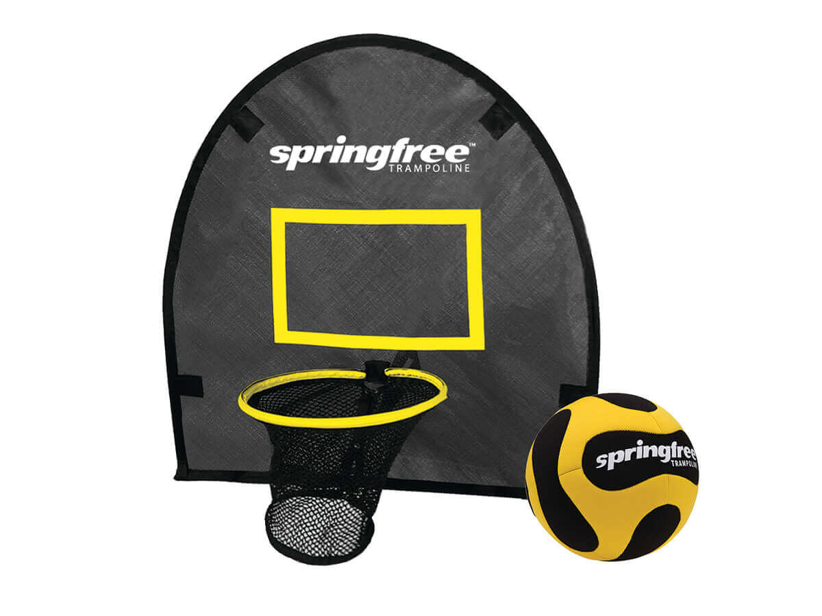 A safety-tested FlexrHoop provides the whole family with the ultimate trampoline/basketball experience as you bounce and shoot hoops at the same time.