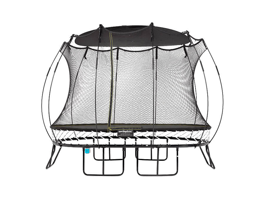 - Safe. When you send your kids out to play on your Springfree Trampoline, you know they’re safe. That’s because Springfree safety features are superior to traditional trampolines. Flexible composite rods located beneath the trampoline, a hidden frame, SoftEdge™ mat, and FlexiNet™ enclosure ensures the jumping surface is free of hard edges and dangerous coils, while cushioning jumpers and preventing falls.